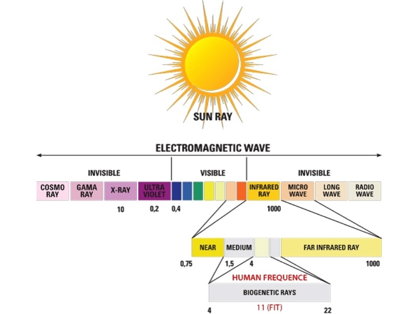 Bioenergetski žarki (del spektra infrardečih žarkov) so oblika delovanja elektromagnetnega sevanja. So kot svetloba, ki je prostemu očesu nevidna. Naše telo sprejema in oddaja bioenergetske žarke, ki prodirajo v organske snovi in vodo ter ustvarjajo enakomeren toplotni učinek. Različne mednarodne medicinske študije so dokazale, da lahko ti žarki spodbudijo izločanje toksinov iz telesa.